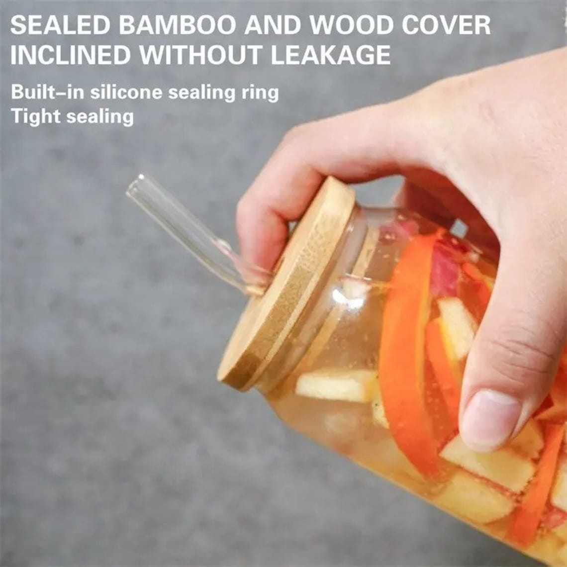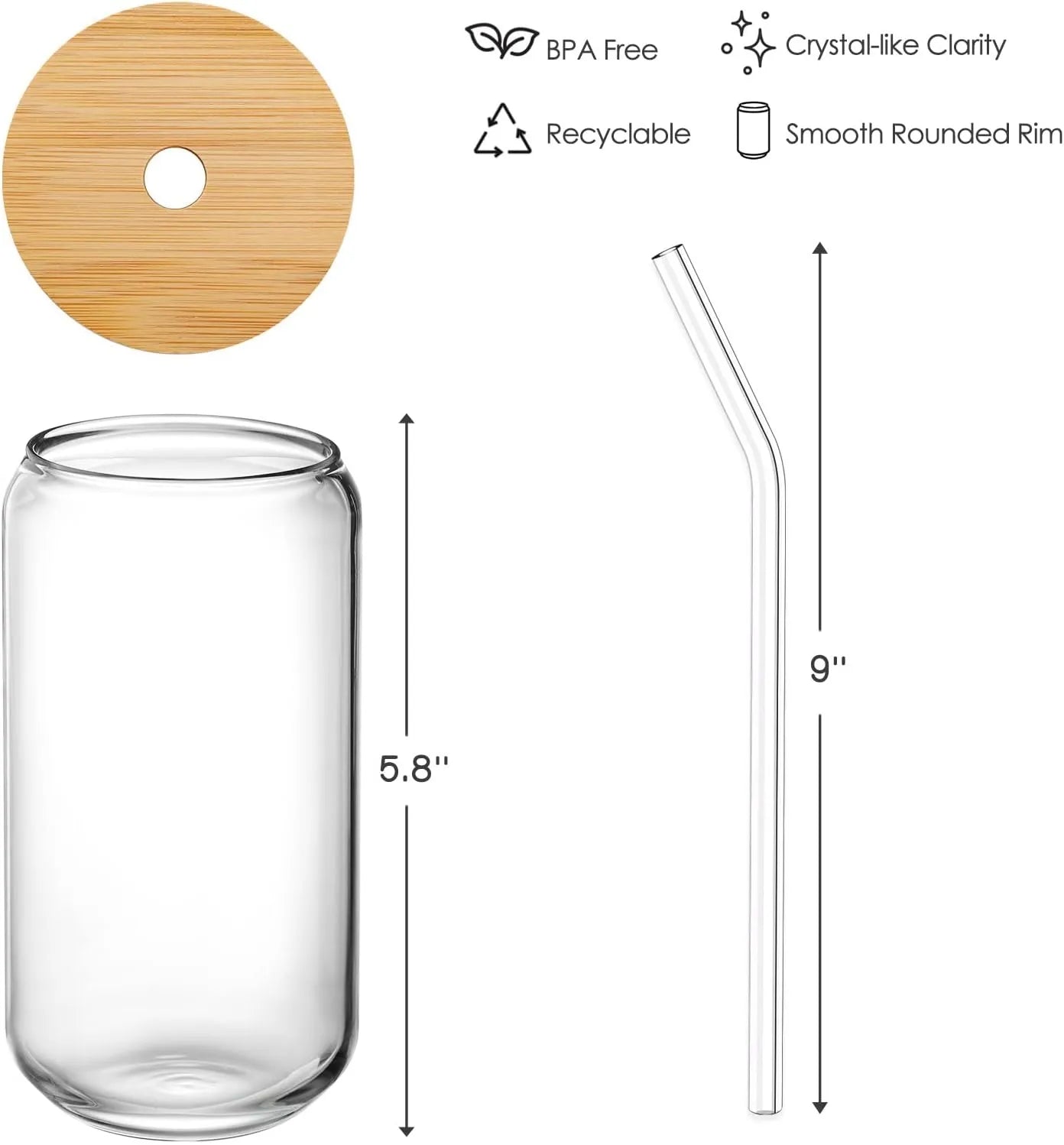 Material: BPA-Free Glass + Bamboo Lid + Glass Straw