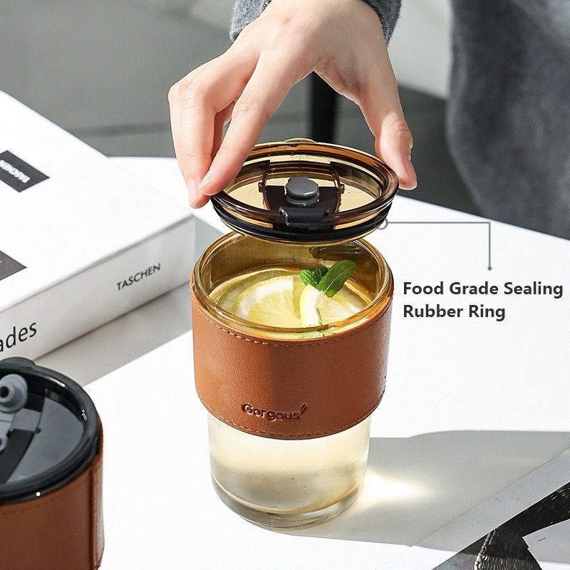 Drink in elegance with the Leather-Covered Glass Sipper Cup – a sophisticated fusion of style and function. This 450ml glass cup comes wrapped in a premium leather sleeve that not only elevates its look but also offers a secure, comfortable grip.