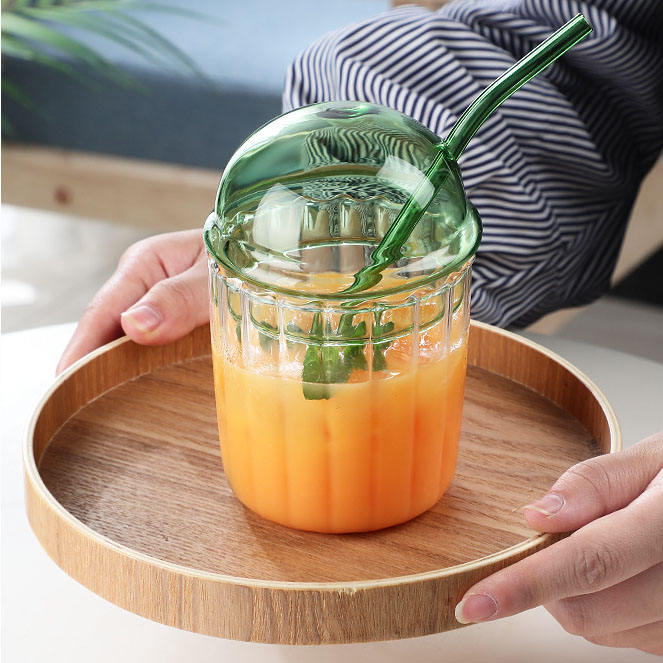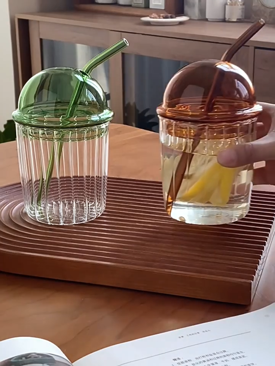 Nordic Ripple Glass Tumbler with Dome Lid
