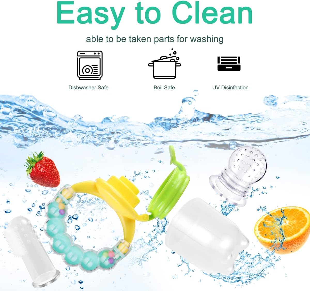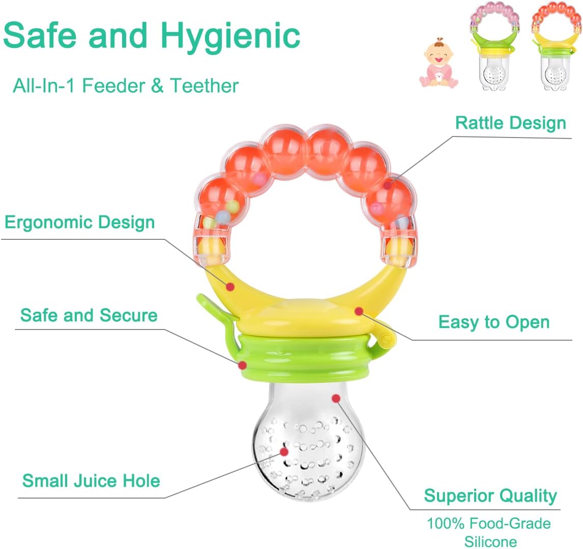 Introducing the Baby Fruit Feeder – a must-have for every parent! This 2-in-1 teether and feeder lets your little one enjoy the taste of fresh fruits and veggies safely, while soothing sore gums during teething. 🍇🍌
