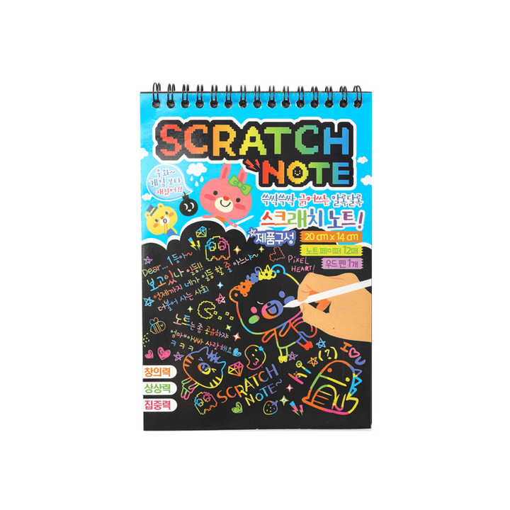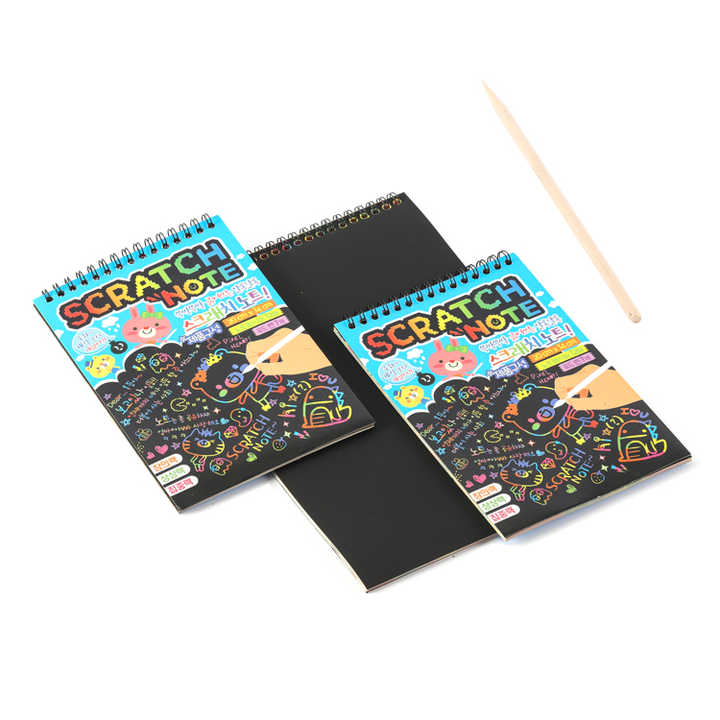 Unlock your child's creativity with our Scratch Art Notebook – a magical drawing pad that transforms every scratch into a burst of color! Each page is coated with black matte material that reveals bright, rainbow-colored patterns underneath when scratched with the included stylus.